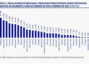 Casi 7 mil paisanos han sido devueltos de la frontera en un año, señala estudio de BBVA Research
