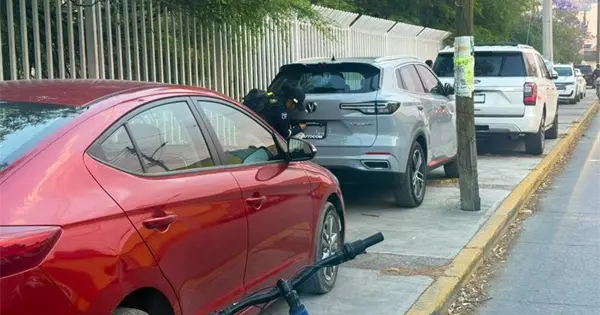 Elementos de la Policía Vial realizaron recorridos en las inmediaciones del deportivo Jacobo Payán, ubicado en la avenida Niño Artillero 757, en la colonia Garita de Jalisco, donde detectaron varios vehículos estacionados de forma indebida, principalmente sobre banquetas.