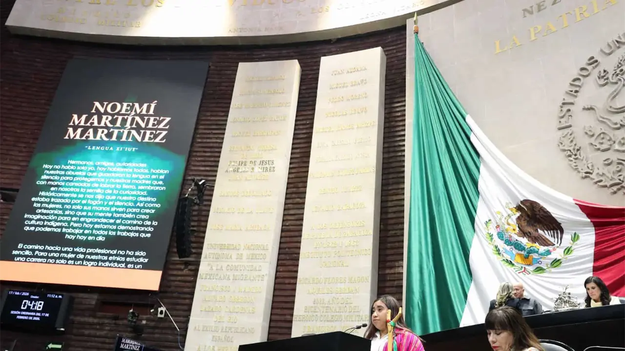 La presidenta de la Mesa Directiva, Kenia López Rabadán, informó que la participación de Noemí se dio como parte de un espacio destinado a visibilizar las lenguas originarias en la tribuna legislativa.