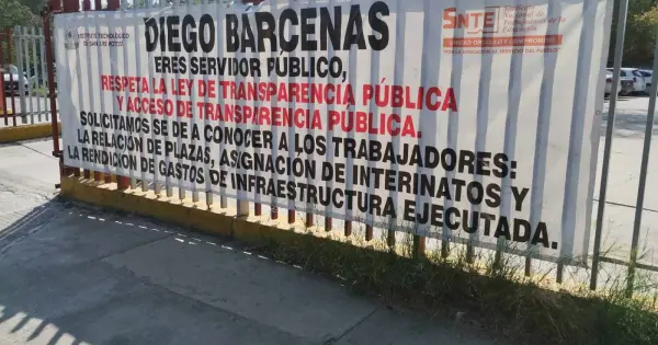 Las mantas estudiantiles se colocaron junto a las de índole sindical, en las que se reclama al director Diego Bárcenasdiversos aspectos, como la falta de transparencia en la asignación de plazas e interinatos, violaciones a la Ley Federal del Trabajo y desinformación en los gastos de obras de infraestructura, entre otros señalamientos.