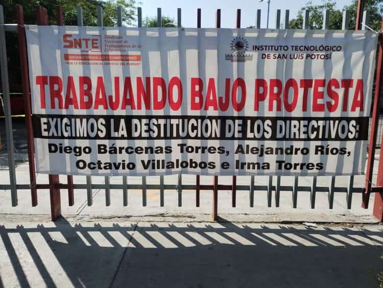 Estudiantes del Instituto Tecnológico de San Luis Potosí (ITSLP) protestaron en contra del descuido académico que se ha generado recientemente por los conflictos entre docentes y trabajadores administrativos con los actuales directivos del plantel, Diego Bárcenas y Alejandro Ríos.