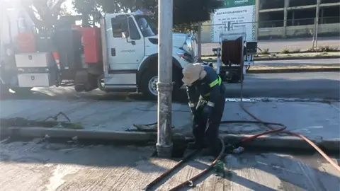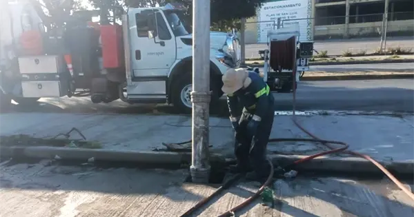 Como parte de las acciones, se utilizó un camión hidroneumático para realizar sondeos y labores de limpieza en las líneas municipales, con el fin de liberar posibles obstrucciones y reducir los niveles de agua en el sistema. Sin embargo, las maniobras no eliminaron el derrame.