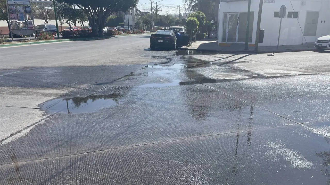 Asimismo, automovilistas que transitan por el área deben extremar precauciones debido a la acumulación del líquido sobre el pavimento, lo que puede provocar derrapes o afectaciones a los vehículos, particularmente en horas de mayor circulación.