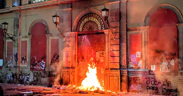 La marcha concluyó con la intervención del edificio principal de la Universidad Autónoma de San Luis Potosí (UASLP), un acto simbólico que formó parte de las actividades del 8M.