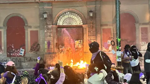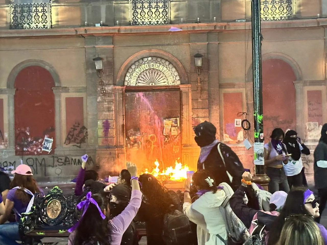 Uno de los principales puntos de concentración fue la sede de la FGE, donde se habilitó un espacio de diálogo para que quienes lo desearan compartieran sus casos y experiencias. En ese sitio también se registraron actos de iconoclasia por parte de integrantes del llamado bloque negro. Más tarde, en Palacio de Gobierno, manifestantes derribaron las vallas colocadas para resguardar el edificio, mientras desde el interior del recinto les arrojaban agua.