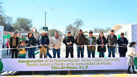 El gobernador de San Luis Potosí Ricardo Gallardo Cardona, inauguró las nuevas calles Carranza, Benito Juárez y Pardo, en la comunidad de Pardo, en el municipio de Villa de Reyes, consolidando un cambio que se vive y se siente para las familias potosinas de la región, con más seguridad, movilidad y plusvalía.