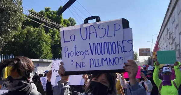 Estudiantes de distintas facultades se manifestaron por segundo día consecutivo para exigir justicia por el caso de violencia de género en la Facultad de Derecho. Las movilizaciones provocaron bloqueos en varias vialidades de la capital potosina.
