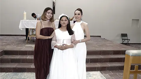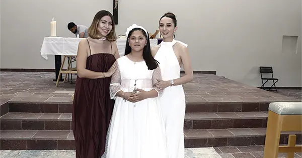Emocionada, Mía recibió el cuerpo y la sangre de Cristo, a través de la hostia y el vino consagrados en la Eucaristía.
