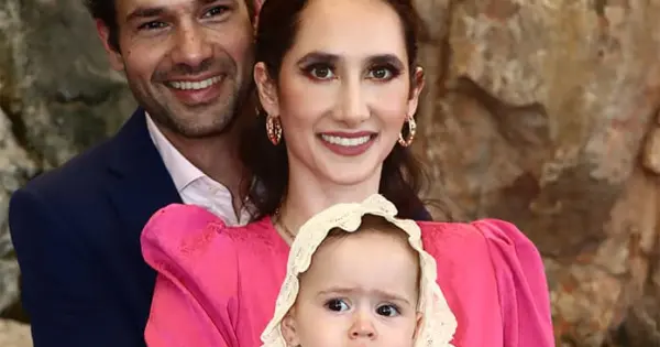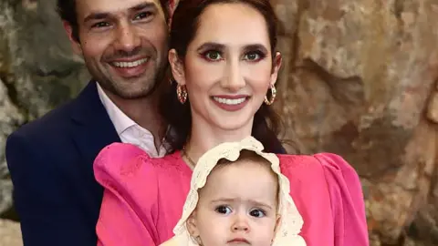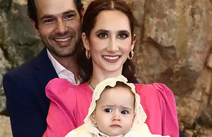 En la ceremonia con la niña sus padrinos: Óscar Guerrero, Mauricio Mahbub y Valeria Guerrero.