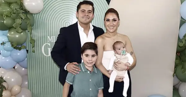 Con sus papás: Carlos Hermosillo y Gina Briones llegó a la parroquia de la Sagrada Familia de Nazaret.